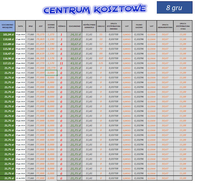 Obliczam sobie zużycie gazu.  Tak, żeby wiedzieć ile zapłacę na koniec miesiąca za gaz.  Normalna rzecz, prawda?  Powiedzmy. Tylko, że ja stworzyłem do tego specjalny  arkusz w excelu: