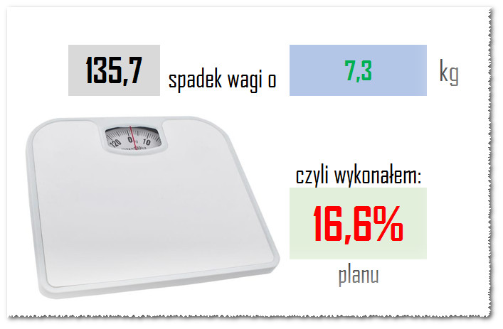 Waga spada, choć cały czas jestem minimalnie poniżej planu. Uznałem, że będę musiał jednak wymusić więcej ruchu od siebie i będzie jeszcze lepiej.