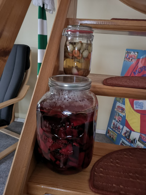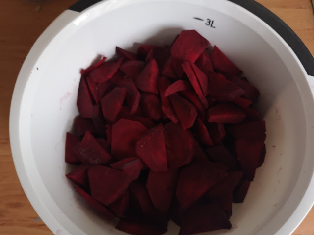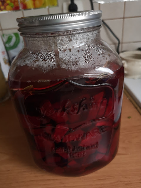 Rozpocząłem dziś przygodę  z burakami.  Takimi czerwonymi.  Kupiłem piękny słój i  dwa kilogramy buraków. Inwestycja w zdrowie.   Przez najbliższe osiem dni będę kisił zakwas buraczany.