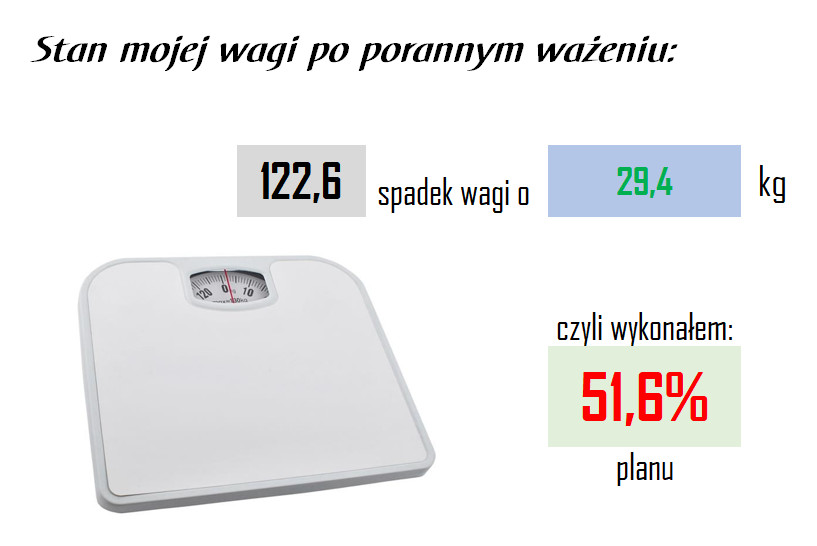 Wszystkie dobrego, Filipie. Ale, na litość boską, nie idź, proszę, do Legii. Ważenie, jakiegoś nieznanego mi powodu, dalej postępuje lawinowo w dół. Tylko się radować. Do momentu, kiedy zrealizuję swoje marzenie i znowu wsiądę na rower, pozostało już niewiele ponad 15 kilogramów. Cel już widać. Połowa sierpnia może być tym pięknym momentem.