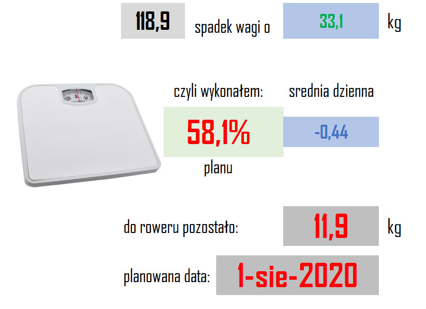 No i wreszcie odchudzanie. Nie ma co ukrywać, że idzie świetnie. Waga spada na łeb na szyję, albo właściwie na brzuch i bardzo szybko przybliża się do oczekiwanego rezultatu.