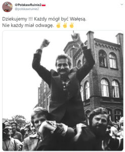 Lech Wałęsa – bohater tamtych dni, obecnie prześladowany przez obóz rządzący, złożył kwiaty pod Pomnikiem Poległych Stoczniowców. Kwiaty zostały usunięte, żeby kamery relacjonujące wizytę delegacji rządowej nie uchwyciły tego wieńca od Wałęsy. Nie umiem tego opisać…