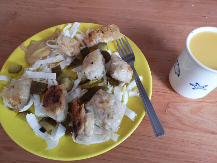 Rano znowu woda cytryną, potem sok pomidorowy, na obiad, zgodnie z planem własna wersja sajgonek, czyli zawijane w papier ryżowy nadzienie z soi, cebuli i ryżu brązowego, przyprawione curry.