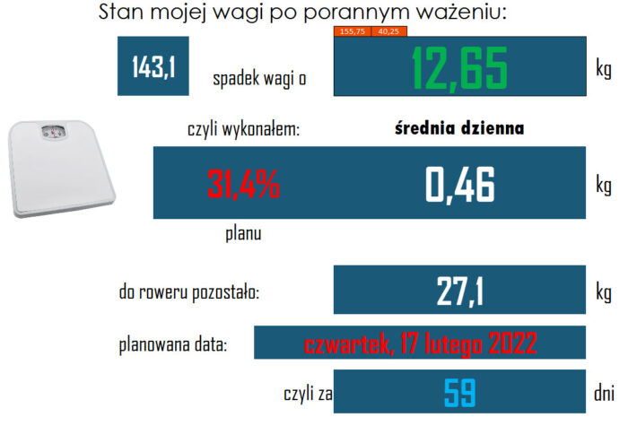 Na razie trzymam się dzielnie i dlatego są efekty. Następny tydzień będzie bardzo ważny i bardzo trudny, bo to będzie tydzień świąteczny. Duże wyzwania dla mnie przy stole.