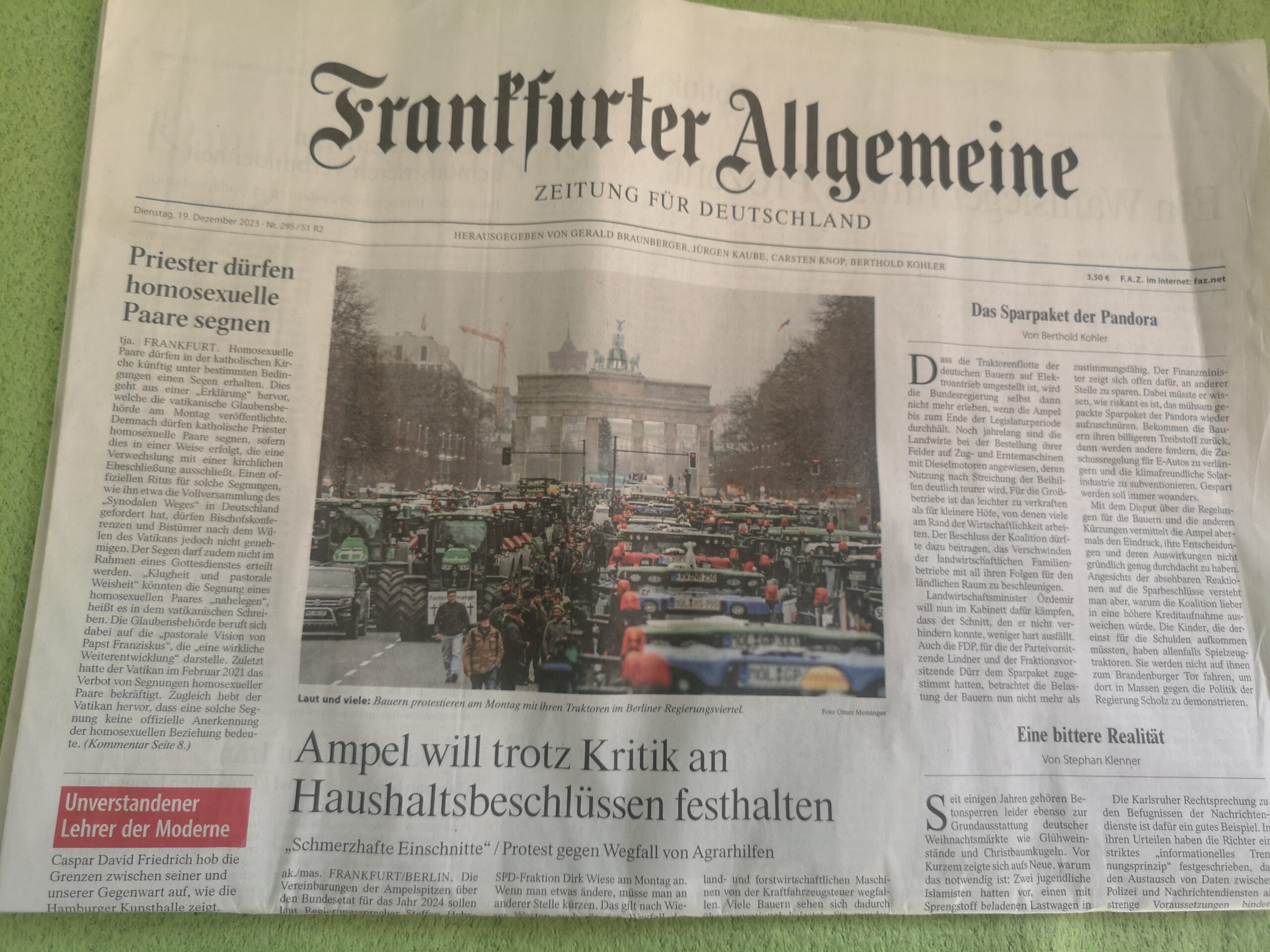 Do mojego zbioru dotarły dwie nowe pozycje: Paweł przywiózł mi z wypadu do Australii miejscową gazetę, a Monika przywiozła niemiecką, kultową, Frankfurter Algemeine Zeitung.
