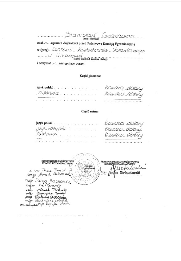 Czas pobytu był dla mnie ważny także z jeszcze jednej strony. Wreszcie uzupełniłem swoje wykształcenie. Zdałem maturę.