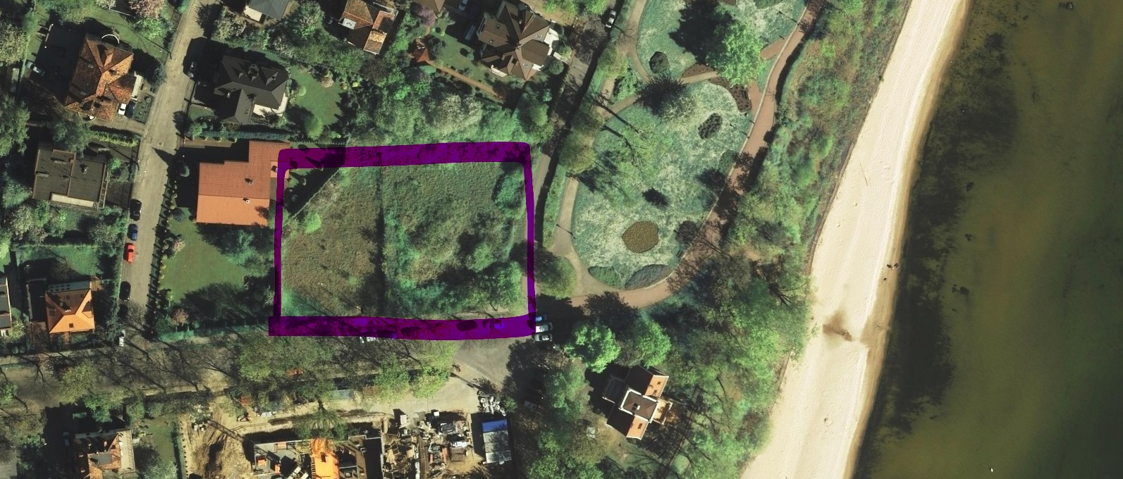położony był niemal nad samym morzem. 100 metrów w linii prostej od plaży. Nie było wtedy obecnej promenady. Na plażę schodziło się leśnym zejściem na końcu ulicy Przebendowskich.