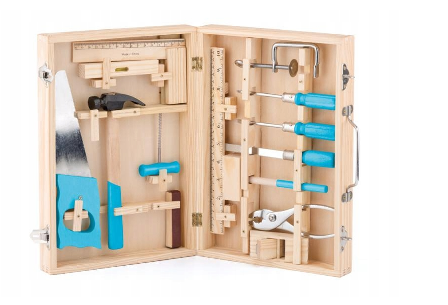 Ten prezent, to był taki fantastyczny zestaw małych narzędzi i metalowych elementów, które łączyło się, skręcało, tworząc wspaniałe konstrukcje. A wszystko to we wspaniałej drewnianej skrzynce. Te narzędzia przetrwały w naszych domach (głównie u Taty) wiele lat i dekad, część z nich zapewne moja siostra wyrzuciła w zeszłym roku podczas robienia porządków w szafie z narzędziami po śmierci Taty.