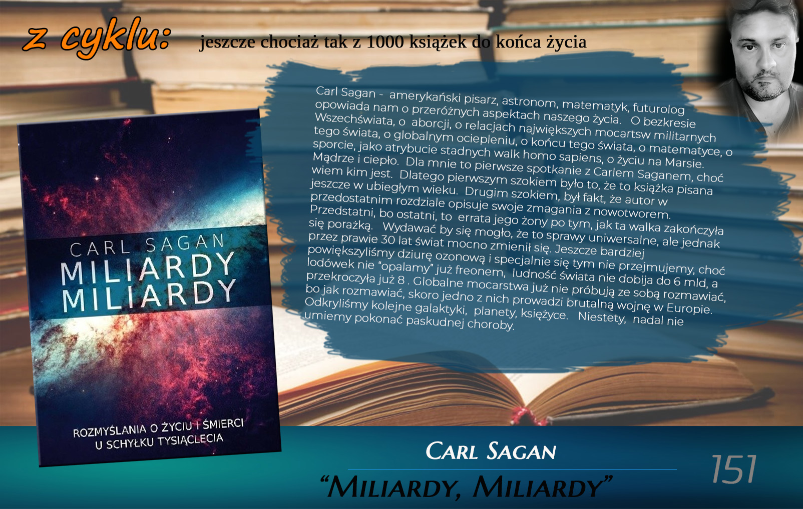 Do tego naukowo filozoficzne rozważania o życiu Carla Sagana, dwie kolejne zabawne historie ze Świata Dysku Terryego Pratchetta, kontynuacja opowieści Remigiusza Mroza i światach równoległych powiązanych w tunelach Riese i jeszcze jedna książka, którą wypożyczyłem przez pomyłkę.