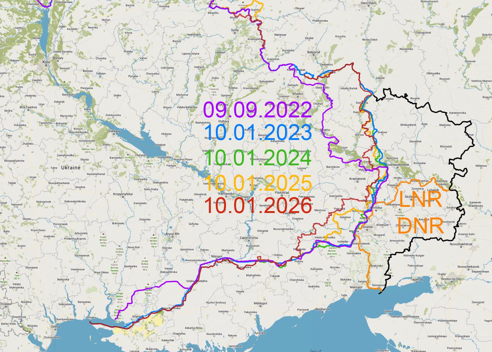 Przez cztery lata niewiele się zmieniło na mapach.  Miesiącami trwają walki o małe prowincjonalne miasteczka, które końców zostają zrujnowana dokumentnie, z których uciekli ostatni mieszkańcu. Potem oprawcy chwalą się, że zdobyli ruiny, a potem sytuacja się odmienia i na spalonych murach powiewa flaga obrońców. I tak to trwa.  I cały czas bomby spadają na ukraińskie miasta, cały czas giną cywile. Ukraina nie może atakować bezpośrednio ruSSkich terenów. Może jedynie niszczyć dronami infrastrukturę. I to robi. Masowo.  niby trwają rozmowy pokojowe inicjowane przez US Prezydenta, ale choc obiecał on zakończenie wojny w trzy dni do dziś wojna trwa i zapewne długo jeszcze trwać będzie.